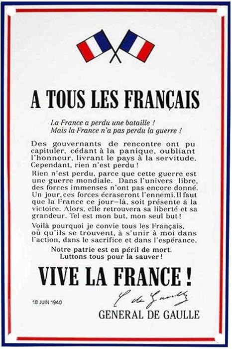 Appel Du 18 Juin Affiche / Affiche Appel 18 Juin D Occasion Plus Que 3 A 70 / L'honneur, le bon sens et l'intérêt supérieur.